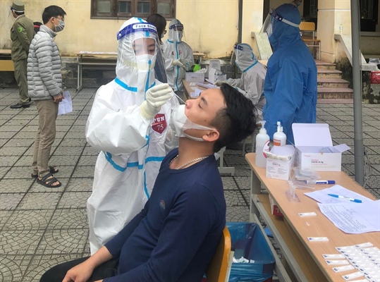 Các thành viên PUN75 hỗ trợ ngành y tế địa phương thực hiện lấy mẫu tầm soát trong Tuần cao điểm tầm soát cộng đồng của TP Huế