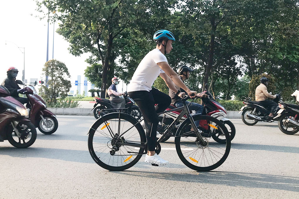 – Nếu bạn sống khá xa nơi làm việc, bạn mới bắt đầu đạp xe đi làm. Hãy thử đạp dần từ 2 ngày mỗi tuần, rồi 3 ngày cho đến 5 ngày mỗi tuần, để cơ thể bạn quen dần với phương tiện mới này.