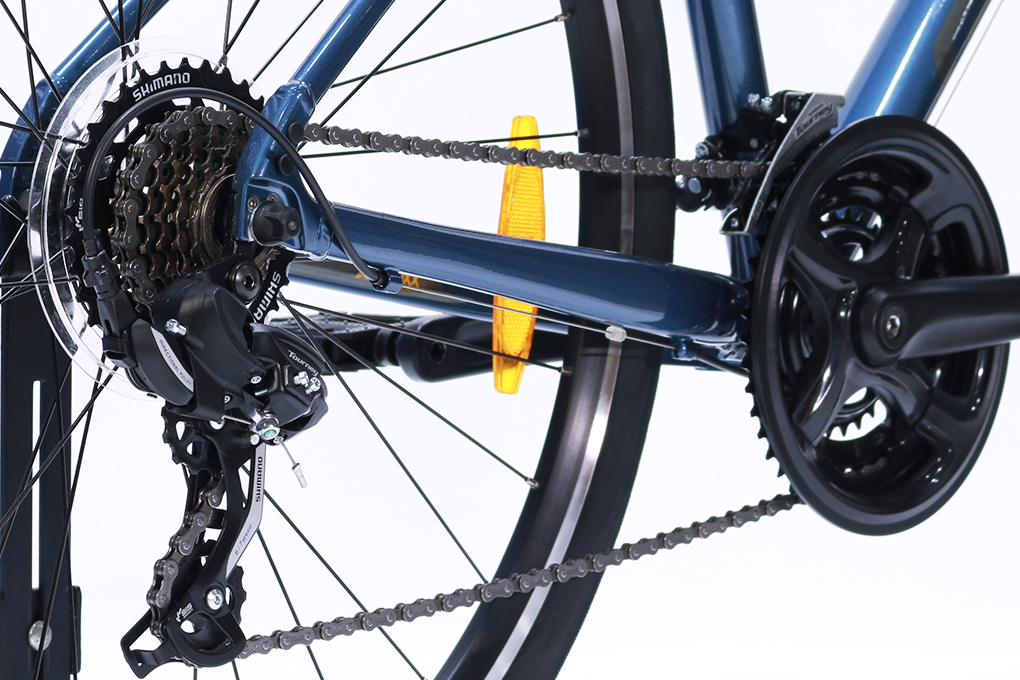 Xe đạp đường phố touring Giant Escape 3 2021 còn sở hữu bộ truyền động Shimano Tourney với chất lượng uy tín từ hãng Shimano nổi tiếng trên thế giới với 3 dĩa và 7 líp. Bộ truyền động hoạt động bền bỉ khiến người dùng hài lòng về khả năng vận hành tốt trên cung đường trường tạo cho người dùng cảm giác êm ái và không bị mất thế khi leo dốc.
