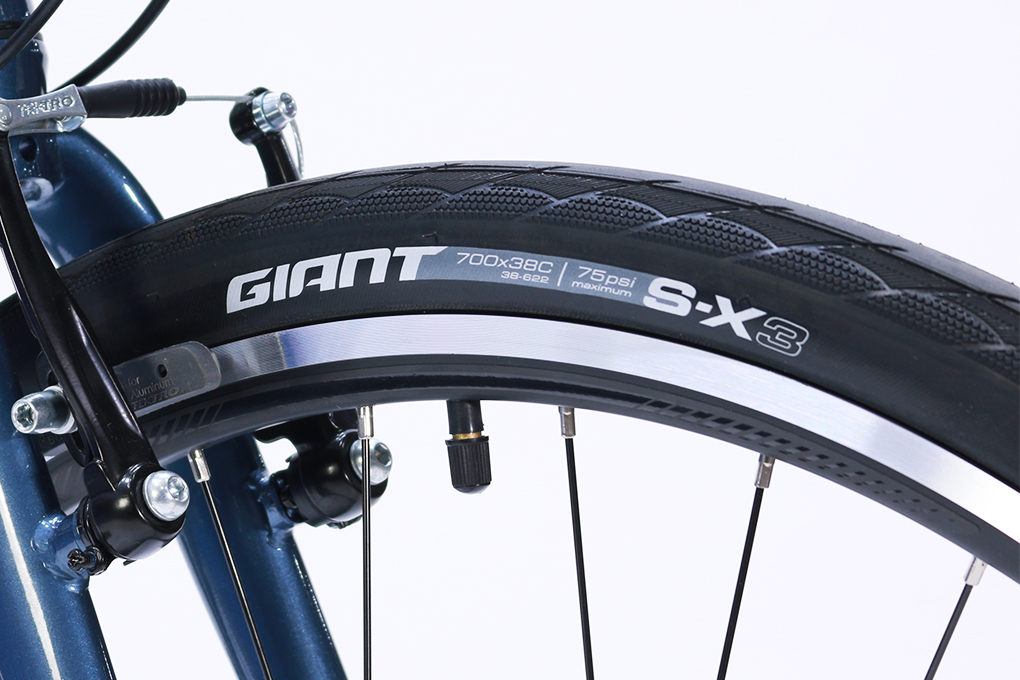 Xe đạp đường phố touring Giant Escape 3 2021 với hệ thống bánh 700x38c giúp bạn di trì vận tốc ổn định hơn và đạt được tốc độ cao khi di chuyển. Mẫu xe này, còn sở hữu cặp vành hợp kim nhôm hai lớp, cho độ bền cao và tránh hiện tượng cong vành khi phải chịu tải trọng lớn. Với lốp Giant S-X3 giúp ngăn chặn và giảm thiếu các vật thể đâm thủng.